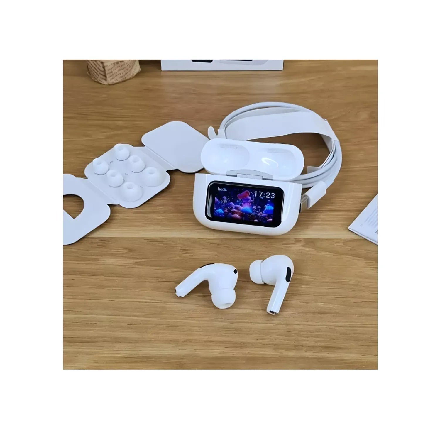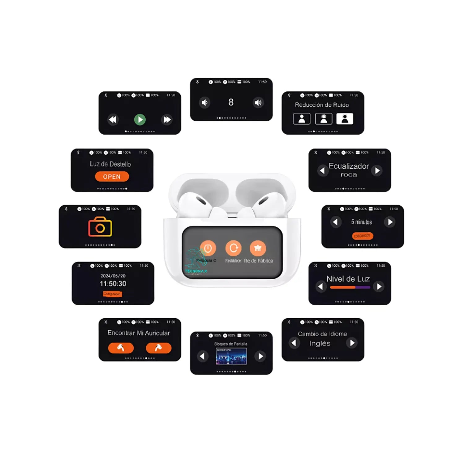 Ajuste fácilmente las funciones directamente desde la pantalla táctil del estuche de carga.
