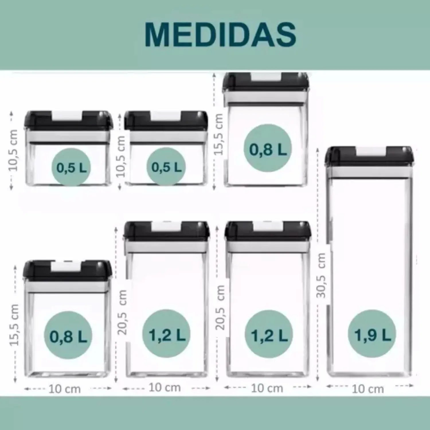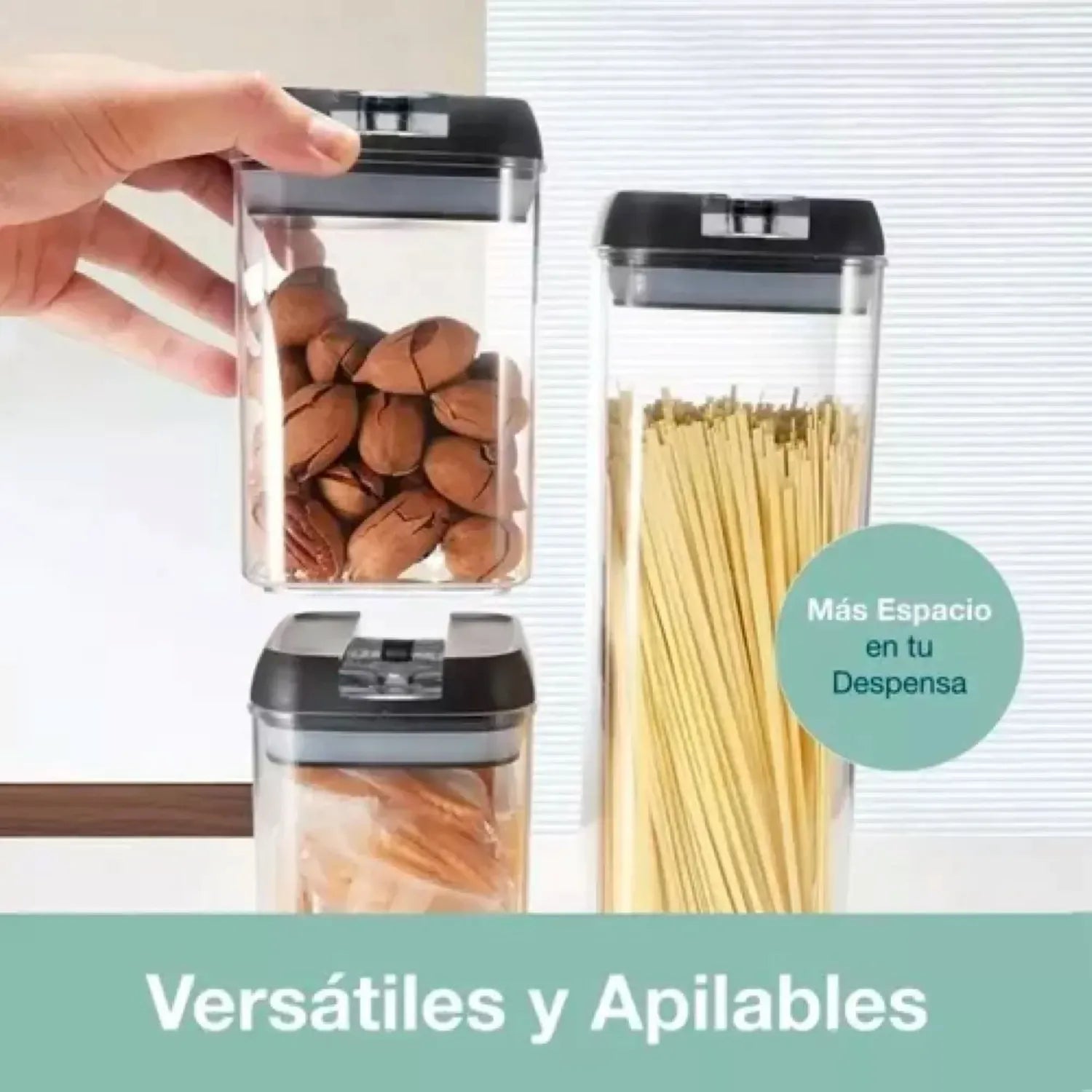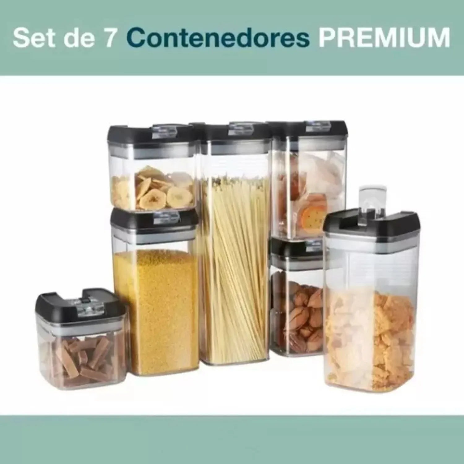 Set de 7 contenedores de alimentos: herméticos y apilables para optimizar el espacio en tu despensa.